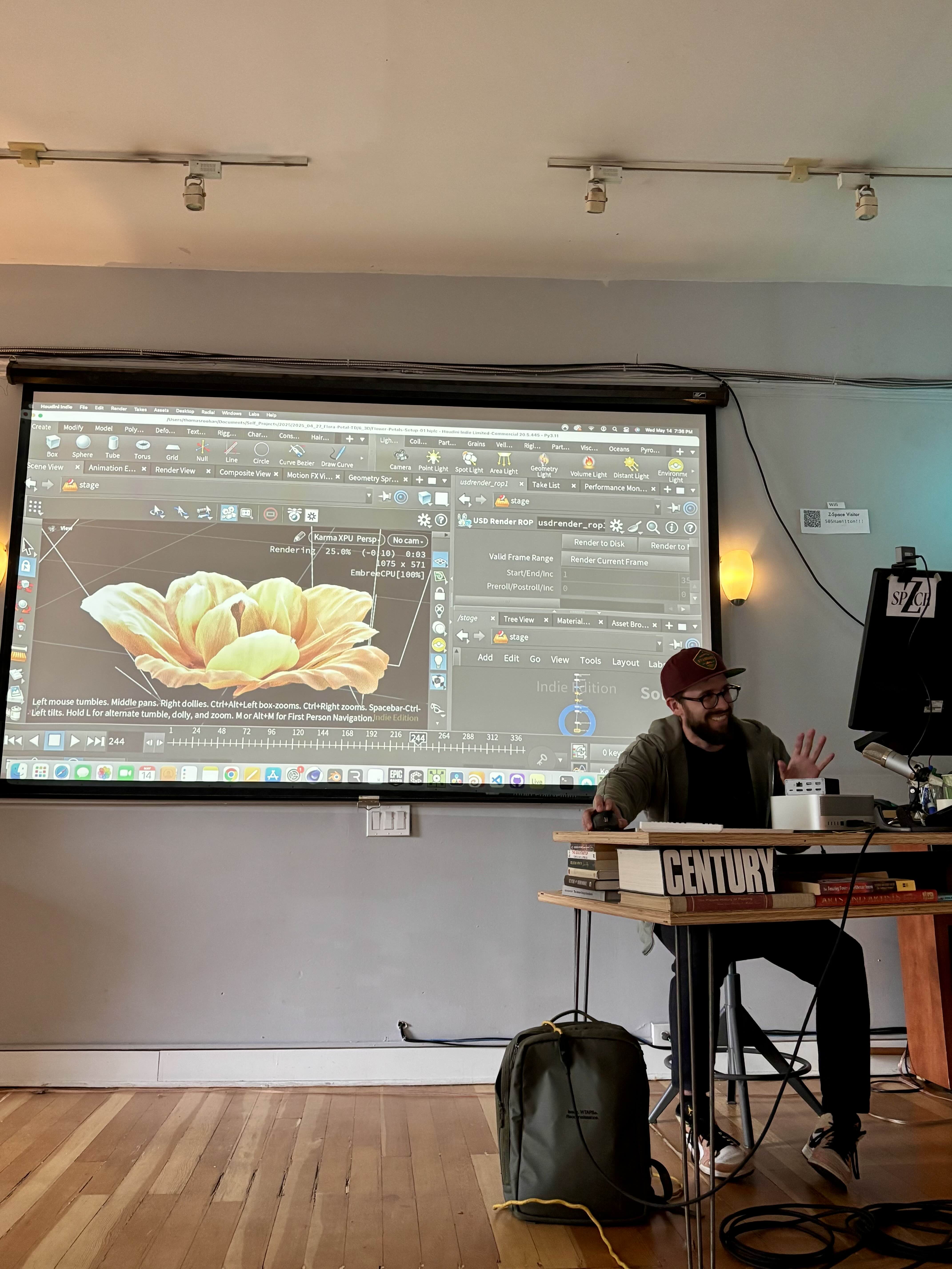 Originally, this was based on a simulated flower that was built in Houdini. The flower petal asset was modelled in Houdini and then brought into Touch Designer.